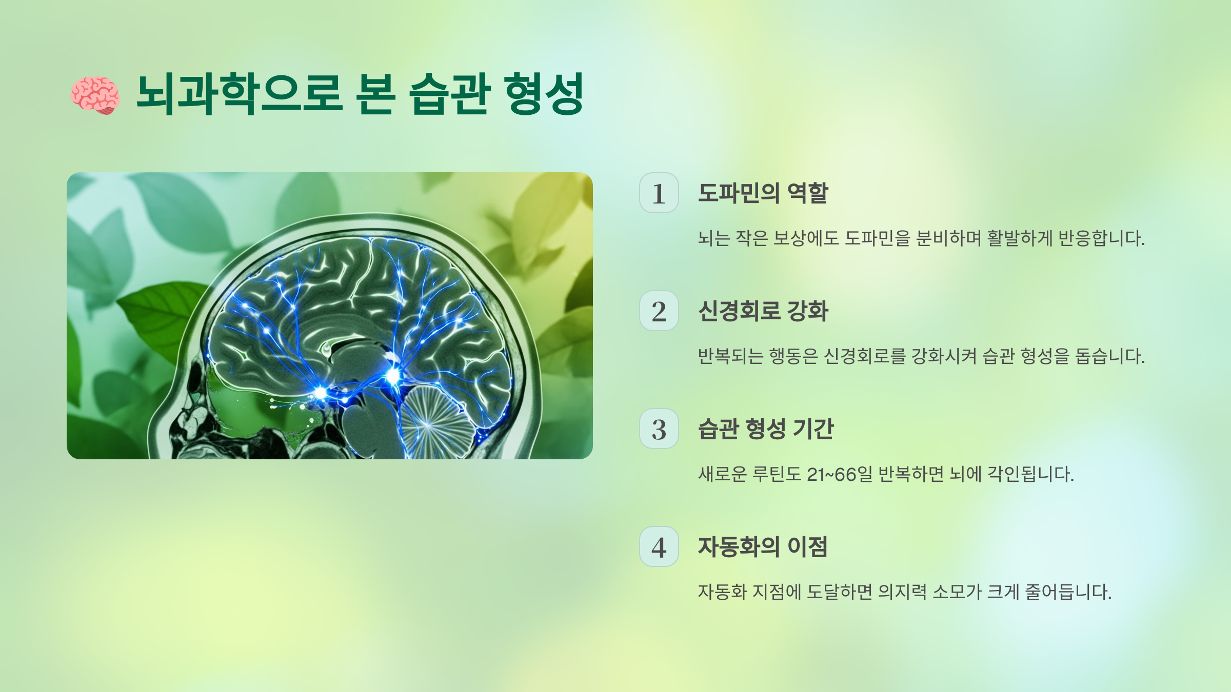 🧠 다음 섹션에서는 뇌과학적으로 왜 루틴이 효과적인지 더 깊이 알려드릴게요!