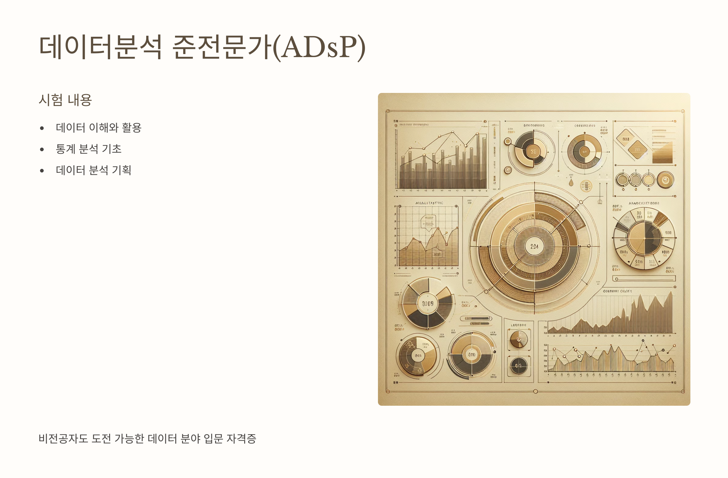 ADsP는 ‘Advanced Data Analytics Semi-Professional’의 약자로, 데이터를 해석하고 비즈니스에 적용하는 기초 능력을 평가하는 자격증이에요. 통계나 수학이 어려워 보여도, ADsP는 비전공자도 충분히 합격 가능한 입문용 데이터 분석 자격증이에요. 📈