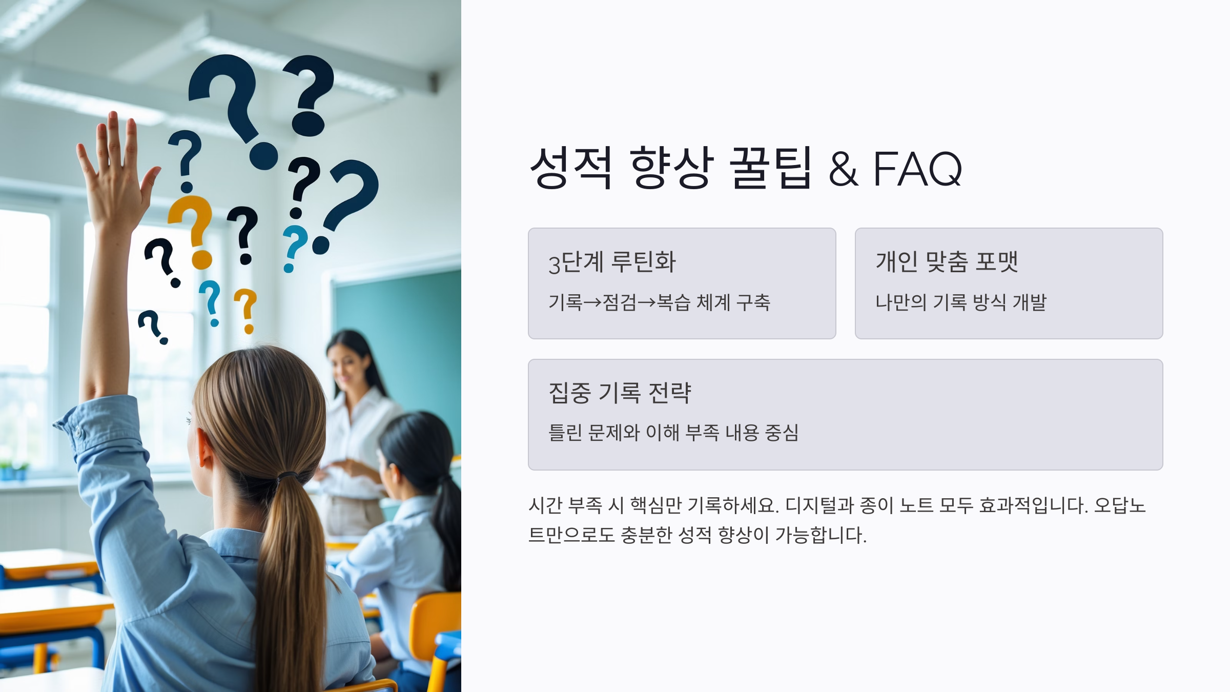 최근엔 공부기록 앱까지 등장하면서 종이 노트가 디지털로 확대되고 있어요. 중요한 건 포맷이 아니라 '기록한다는 습관'이랍니다. ✍️
