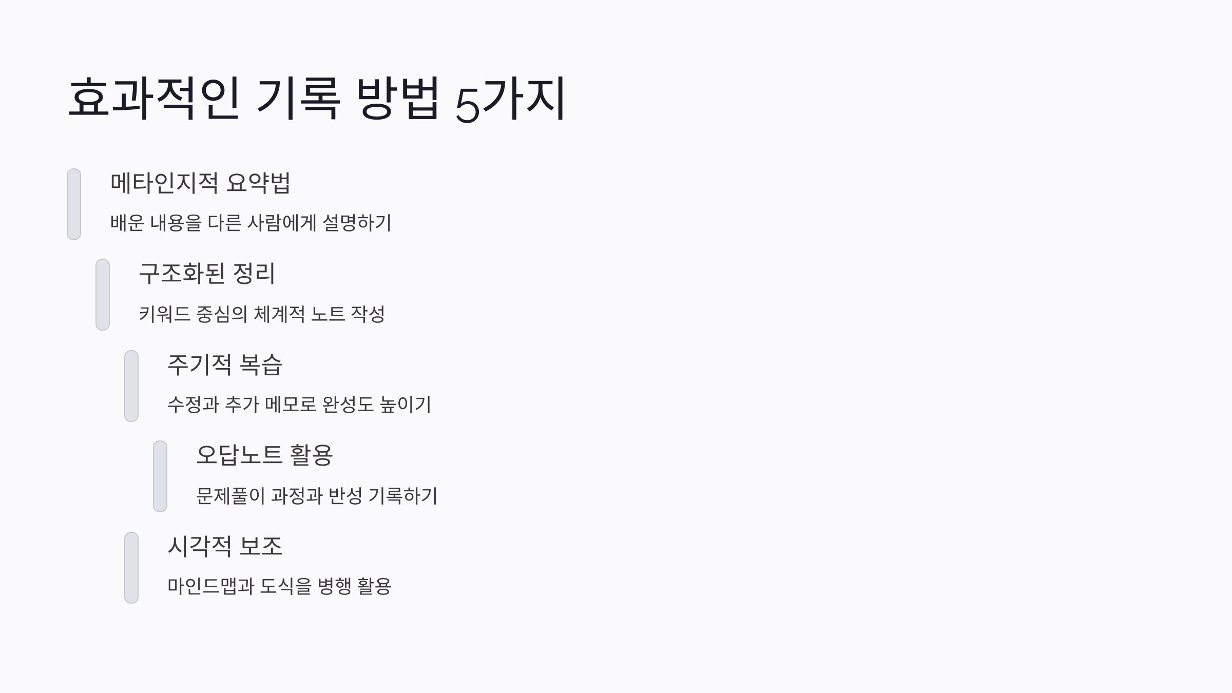 공부기록 노트를 잘 쓰기 위해선 몇 가지 원칙이 필요해요. 그냥 무작정 적기보다는 목적을 갖고 기록하는 게 훨씬 효과적이죠.