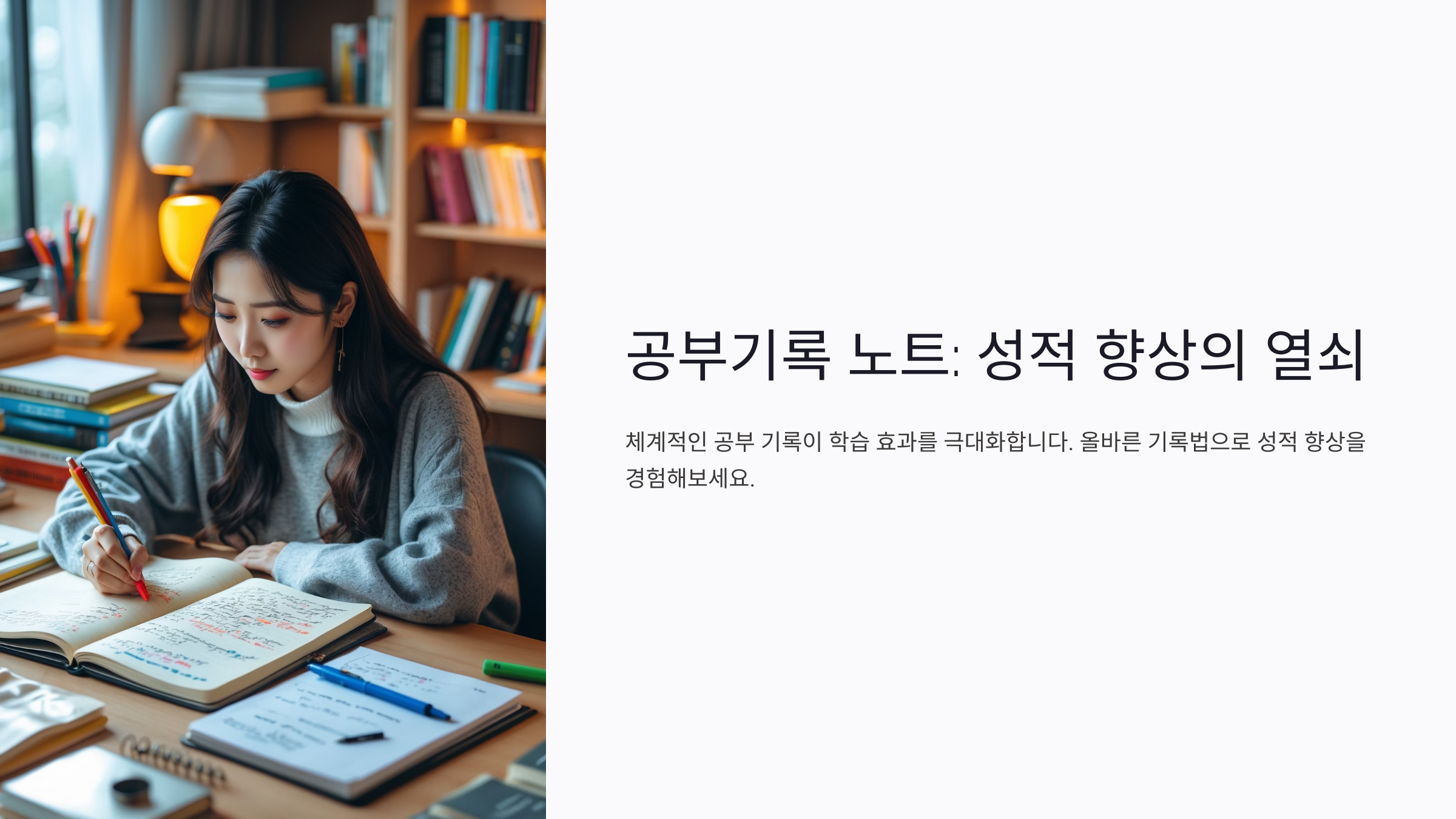 공부기록 노트는 단순한 메모장을 넘어서, 학습을 체계적으로 관리하고 성적을 끌어올리는 강력한 도구예요.