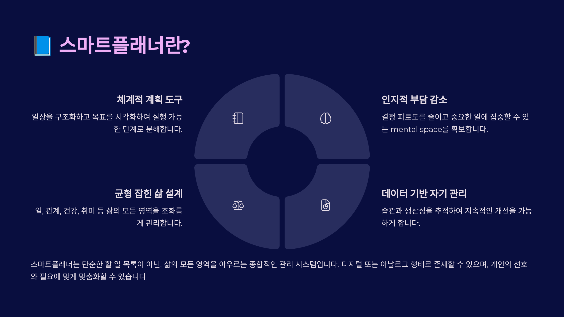 스마트플래너의 핵심은 단순한 시간표 작성이 아니라 일상의 흐름을 정리하는 구조 설계에 있어요.