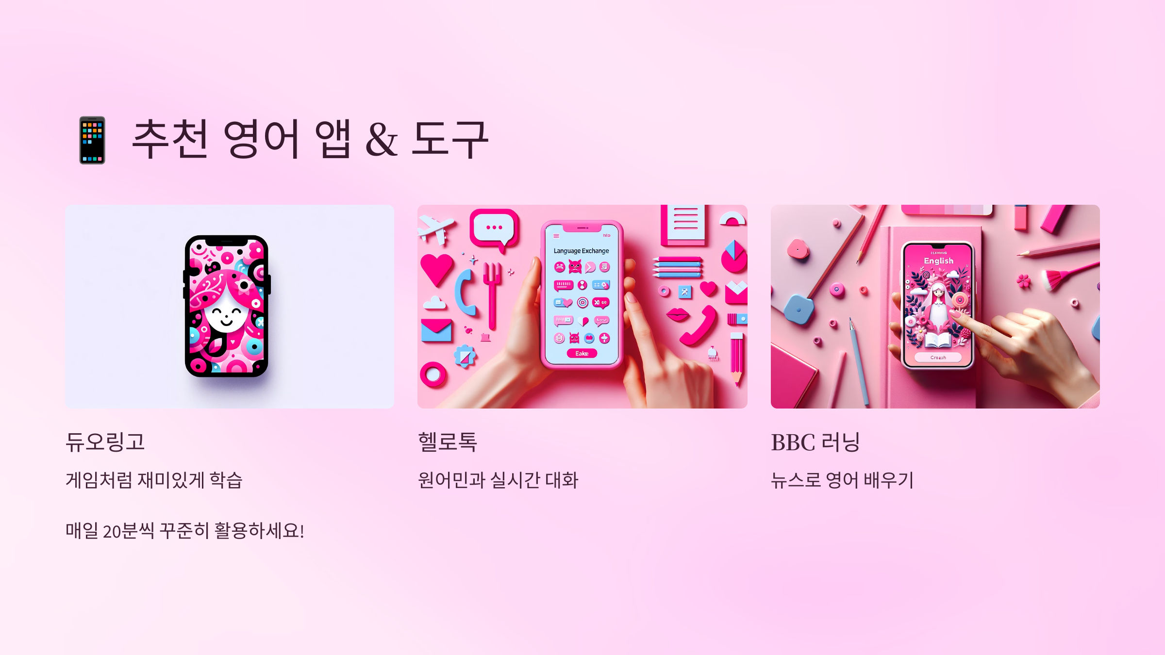 영어 공부는 혼자 하는 싸움 같지만, 도구들이 친구가 되어줄 수 있어요. 지금 당장 앱 하나 설치하고, 내일 아침부터 영어 루틴의 첫 페이지를 열어보세요! 📲