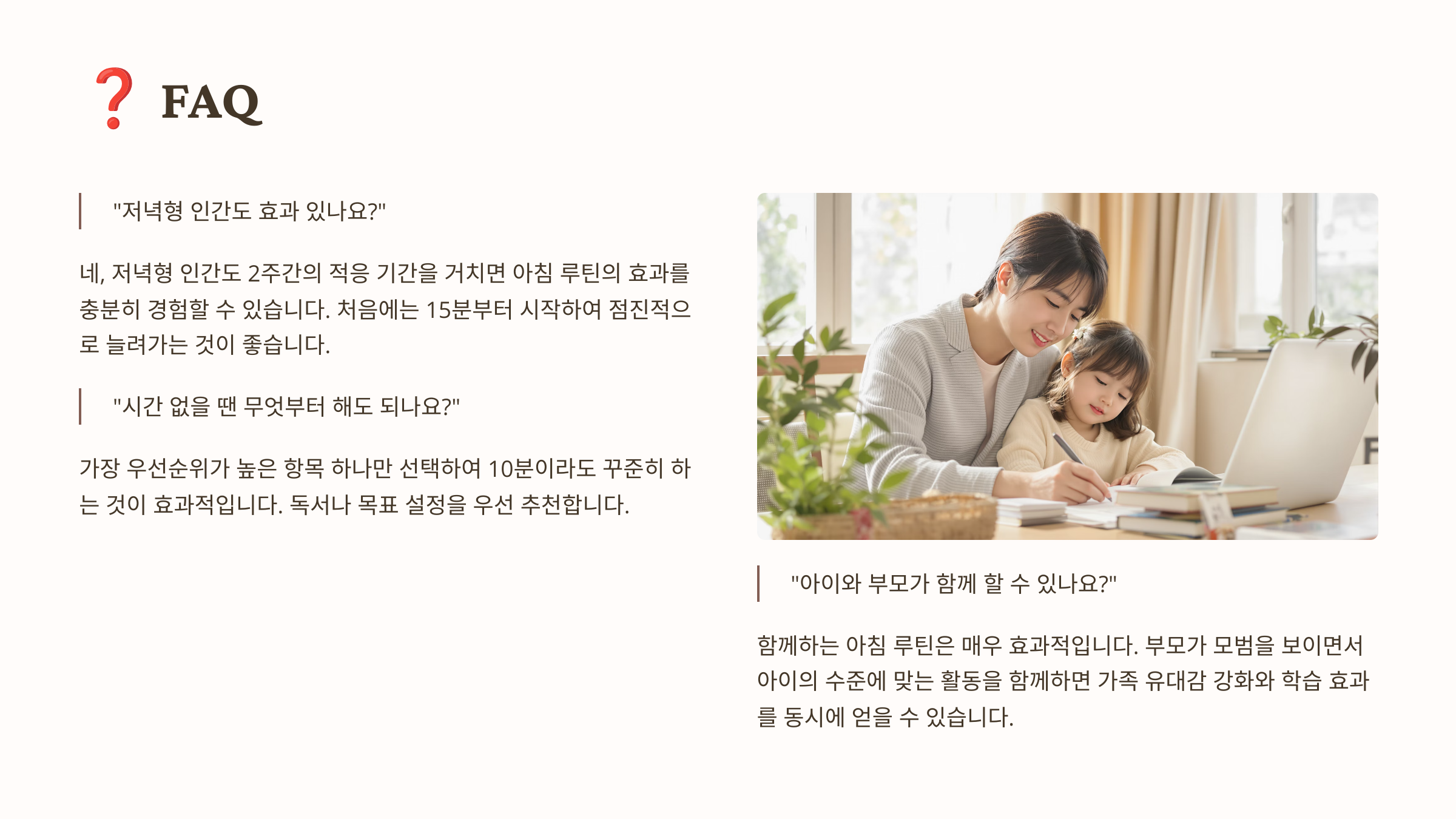 Q1. 아침 30분만으로 정말 효과가 있나요?
