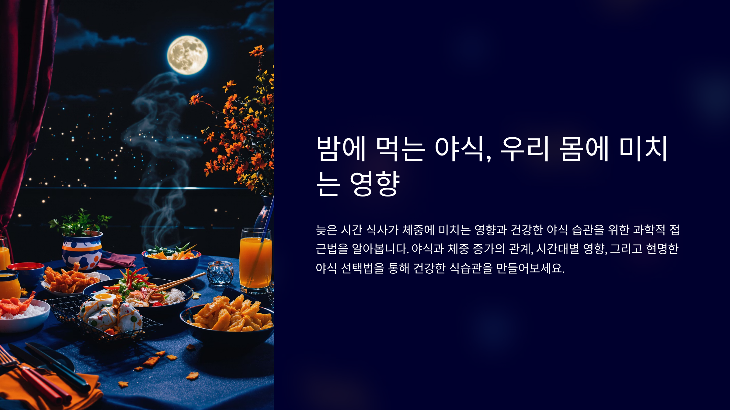🍳 야식, 고치기 어려운 습관이지만 종류만 바꿔도 몸은 빠르게 반응해요! 지금 아래 루틴을 보고 생활에 적용해보세요.