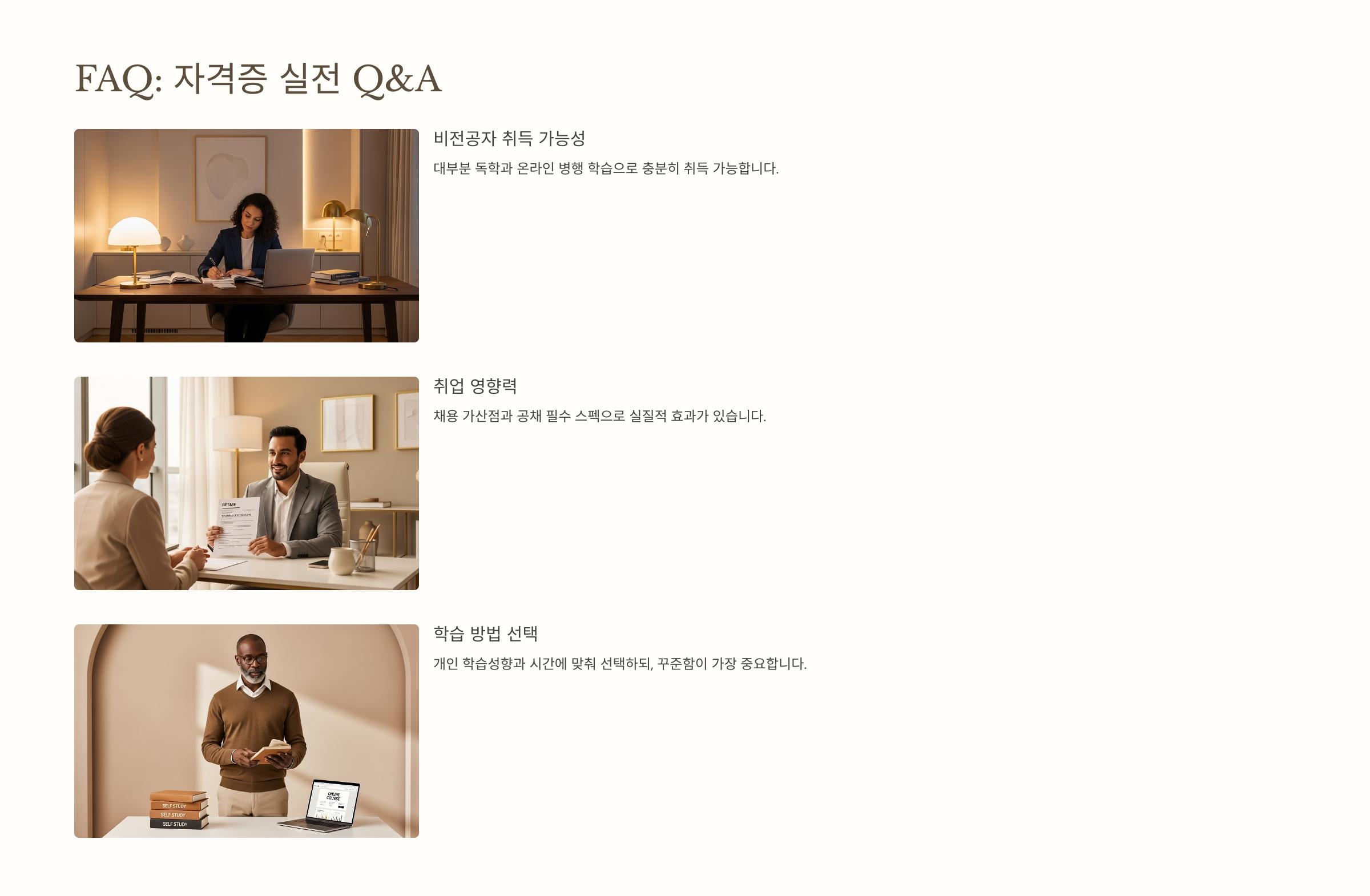 A6. 네, 요즘 온라인 강의 퀄리티가 높고 기출 위주로 잘 정리되어 있어서 혼자서도 합격 충분히 가능해요!