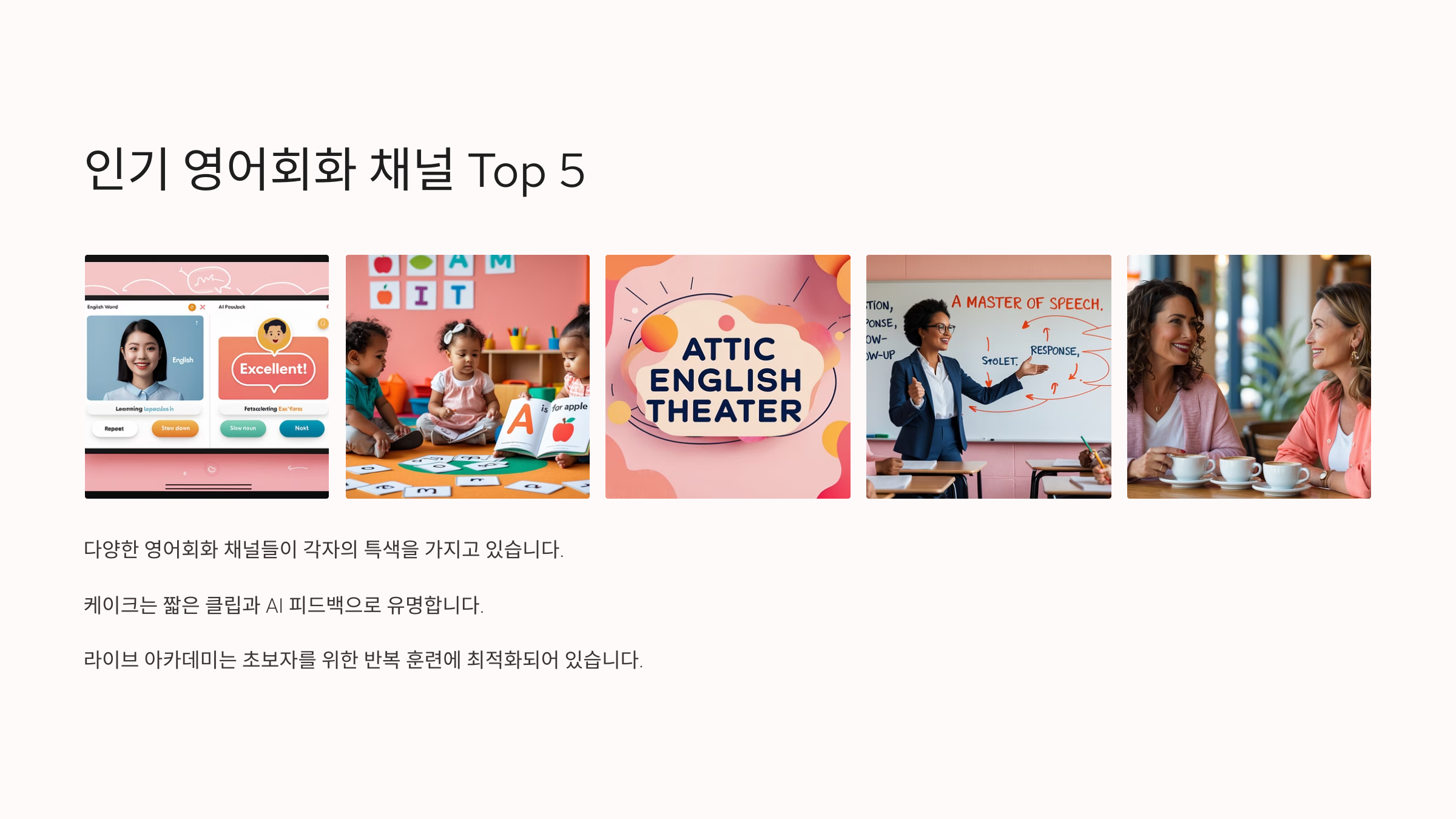 유튜브에는 다양한 영어회화 채널이 있어요. 각 채널마다 내용과 전달방식이 달라서, 나에게 잘 맞는 걸 찾는 게 중요해요. 이번에는 인기 있는 채널들의 특징과 장점을 하나씩 살펴볼게요! 😉