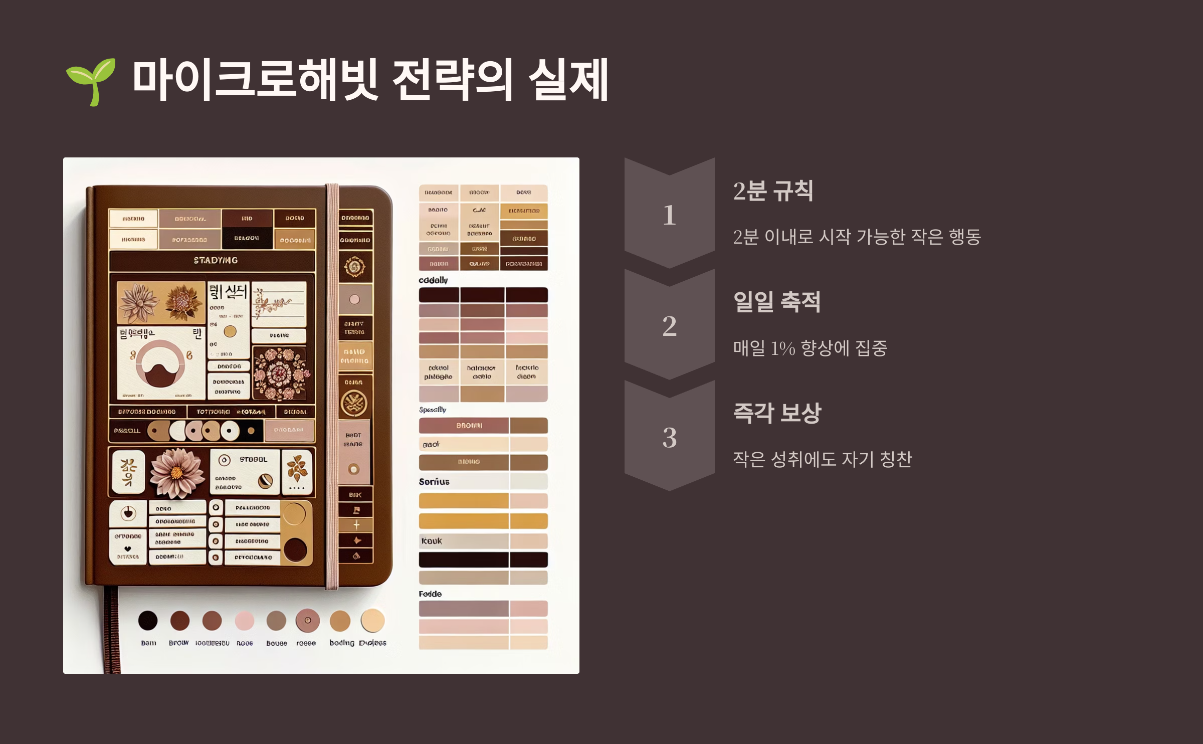 마이크로해빗을 습관으로 연결하려면 ‘과정을 즐기기’가 무엇보다 중요해요. 결과가 나올 때까지 기다리기보다는 ‘오늘은 시작했으니까 괜찮아’라고 스스로 칭찬해주는 자세가 필요하답니다. 🎉