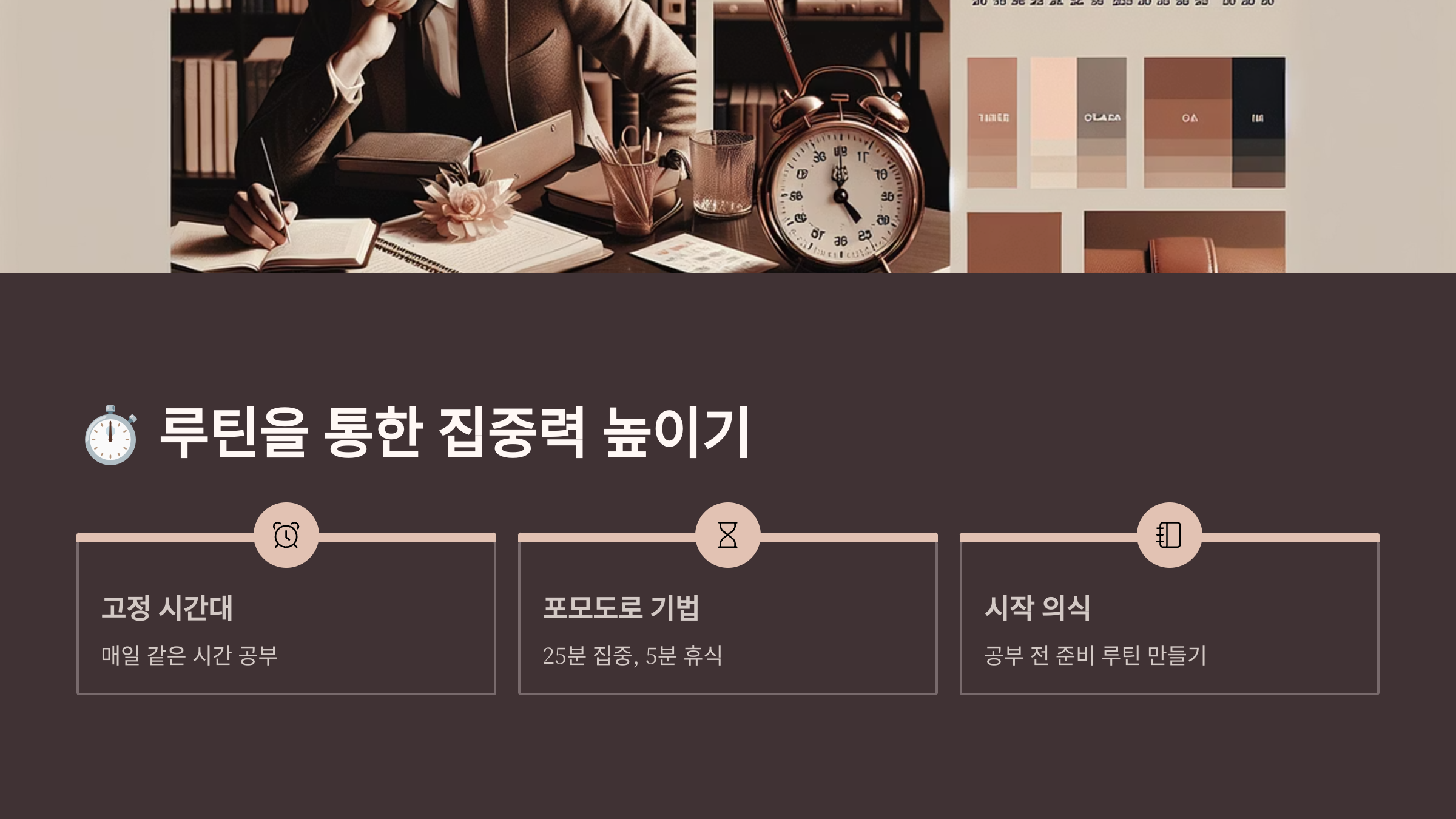 집중력은 타고나는 게 아니라 관리하는 거예요. 특히 공부할 때 '언제', '어디서', '무엇을' 할지를 미리 정해두면 뇌는 반복된 환경 속에서 자동으로 집중 모드로 들어가요. 이게 바로 루틴의 힘이랍니다.