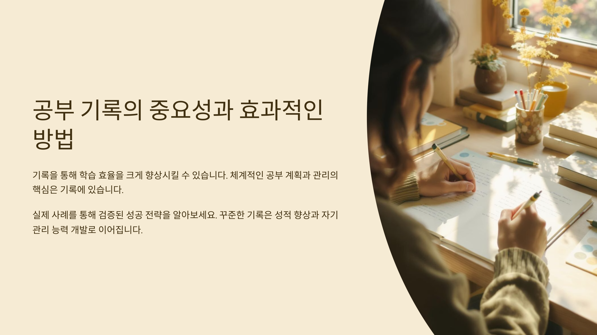 내가 생각했을 때 기록은 단순한 메모가 아니에요. 기록을 통해 내가 어떻게 성장하고 있는지 확인할 수 있고, 스스로에게 '잘하고 있어!'라고 말해줄 수 있거든요. 작은 기록이라도 매일 이어가면 어느새 그 기록이 나만의 공부 히스토리가 되고, 새로운 도전을 할 때도 큰 힘이 되어준답니다. 📚