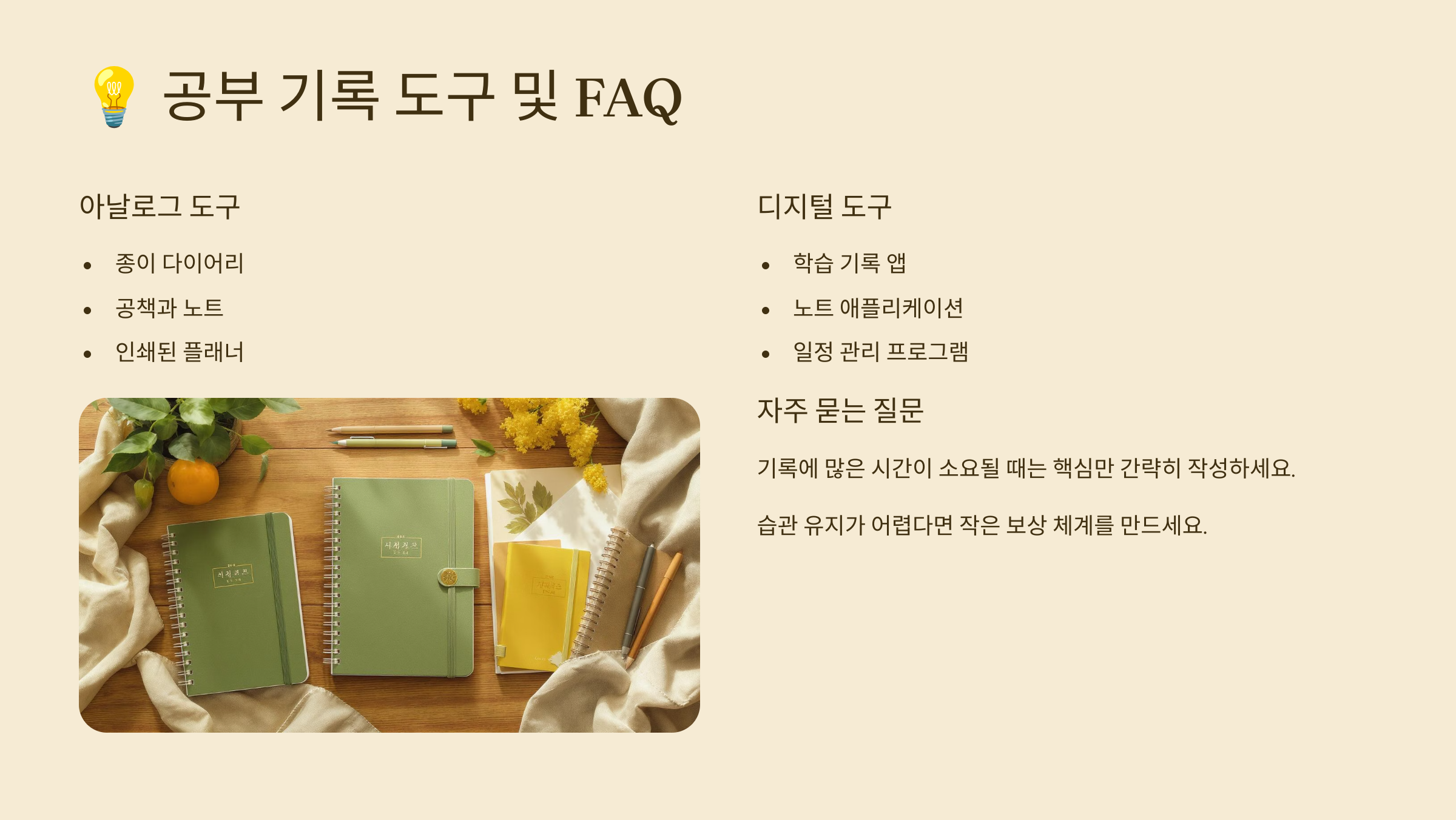 공부 기록을 잘 하고 있어도, 며칠 지나면 흐지부지될 때가 있죠? 그럴 땐 작은 습관부터 다시 챙기는 게 중요해요. 😅
