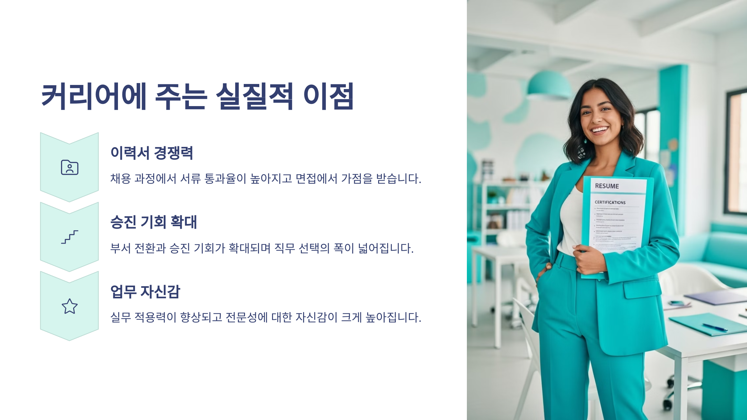 실제로 재직 중인 직장인들의 경우 이력서에 자격증 하나만 추가해도 연봉 협상에서 플러스가 되거나, 부서 이동 시 우대 요소로 작용하는 경우가 많아요. 대학생이라면 공모전, 인턴, 졸업 전 취업 준비에도 큰 도움이 되죠.