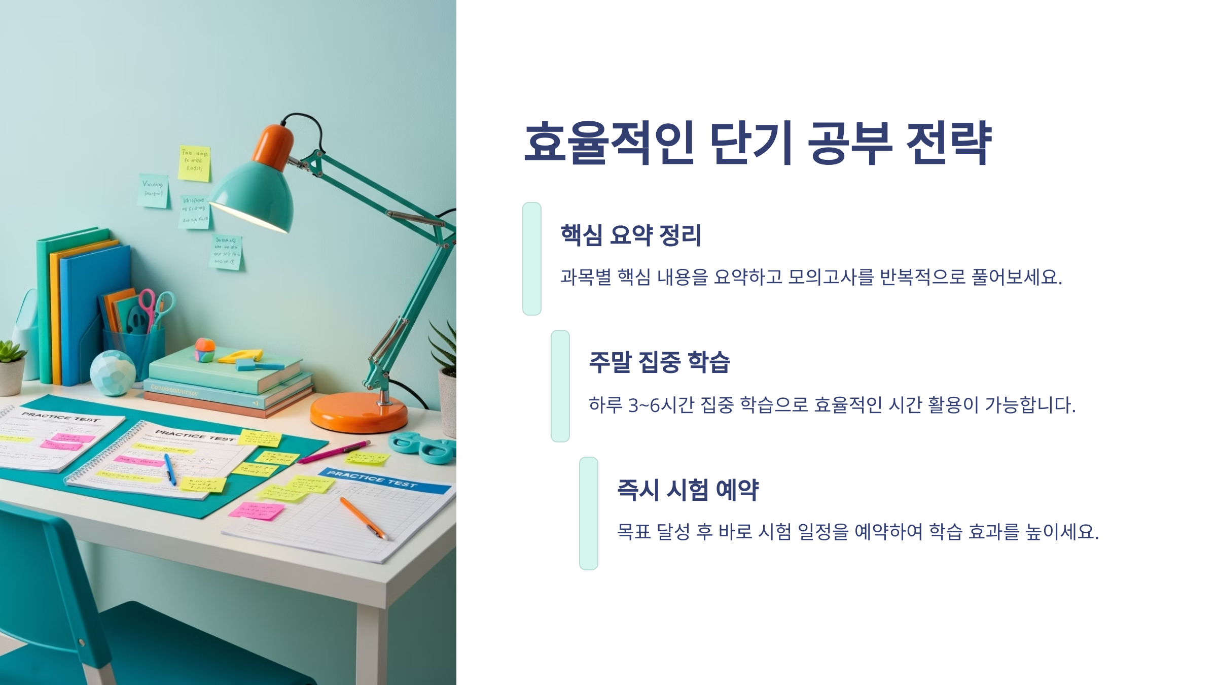 짧은 시간 안에 자격증을 따기 위해선 무작정 공부하는 게 아니라 전략적으로 접근하는 게 중요해요. 특히 단기 자격증은 공부 기간이 짧고 시험 일정도 빠르기 때문에 '핵심 요약형' 학습이 핵심이에요. 📝