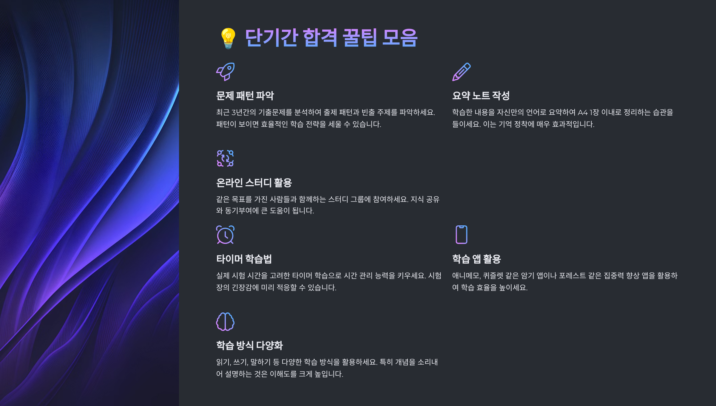 이 꿀팁들을 자신의 루틴에 맞게 적절히 조합하면, 주말이라는 짧은 시간에도 충분히 자격증 합격이 가능해요. 중요한 건 꾸준함과 ‘반복’, 그리고 포기하지 않는 자세예요 💪