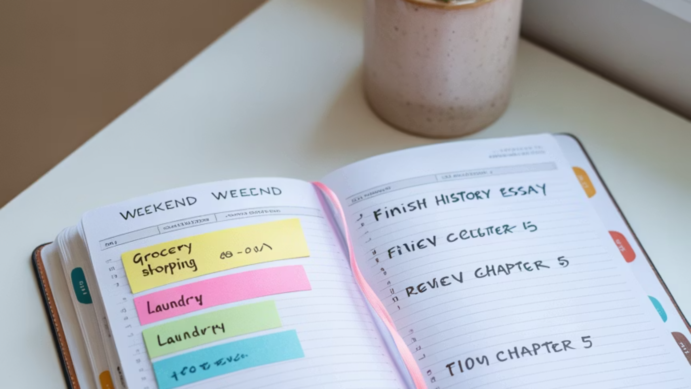 주말 시간표는 미리 목요일이나 금요일 밤에 만들어두면 좋아요. 그래야 주말 아침부터 헤매지 않고 바로 집중할 수 있어요.