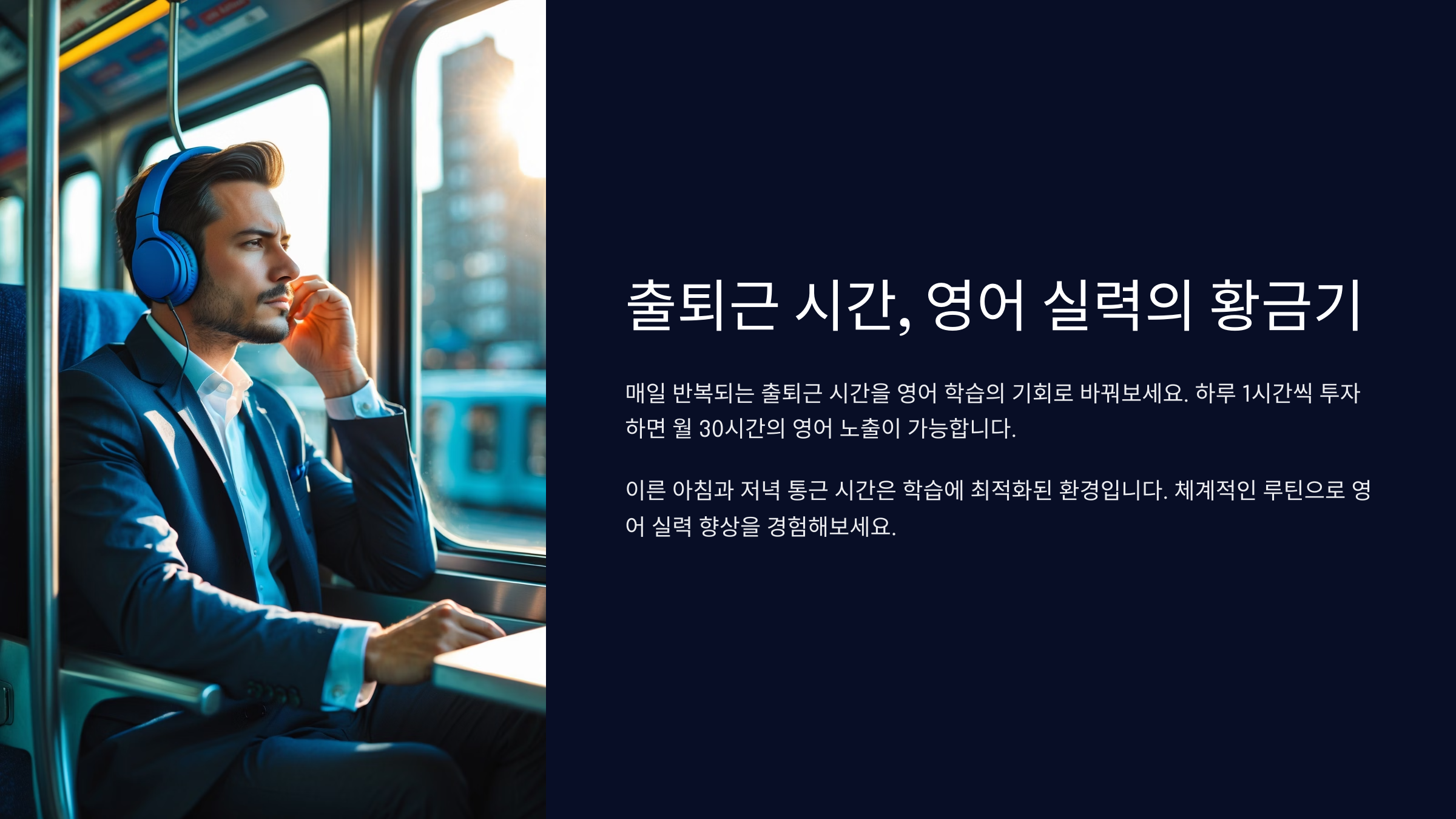영어 실력은 따로 시간을 내야 늘어난다는 고정관념을 깰 차례예요. 바쁜 현대인이라면 오히려 출퇴근길처럼 반복되는 짧은 시간이 최고의 학습 시간일 수 있어요.