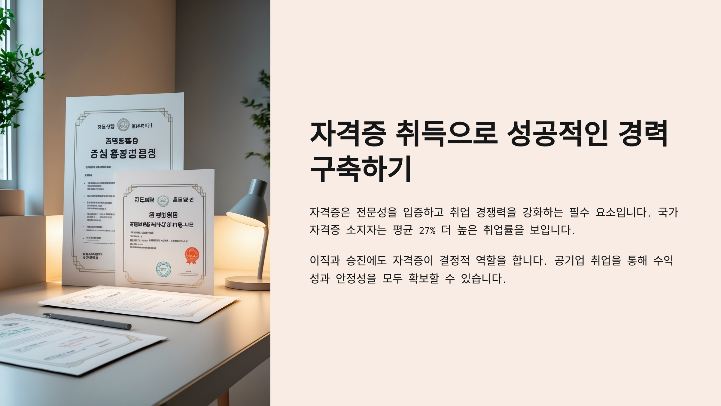 지금 도전하지 않으면, 1년 후에도 지금 그대로일 수 있어요. 하지만 자격증은 1~3개월 안에 변화를 가져올 수 있는 유일한 도구예요.