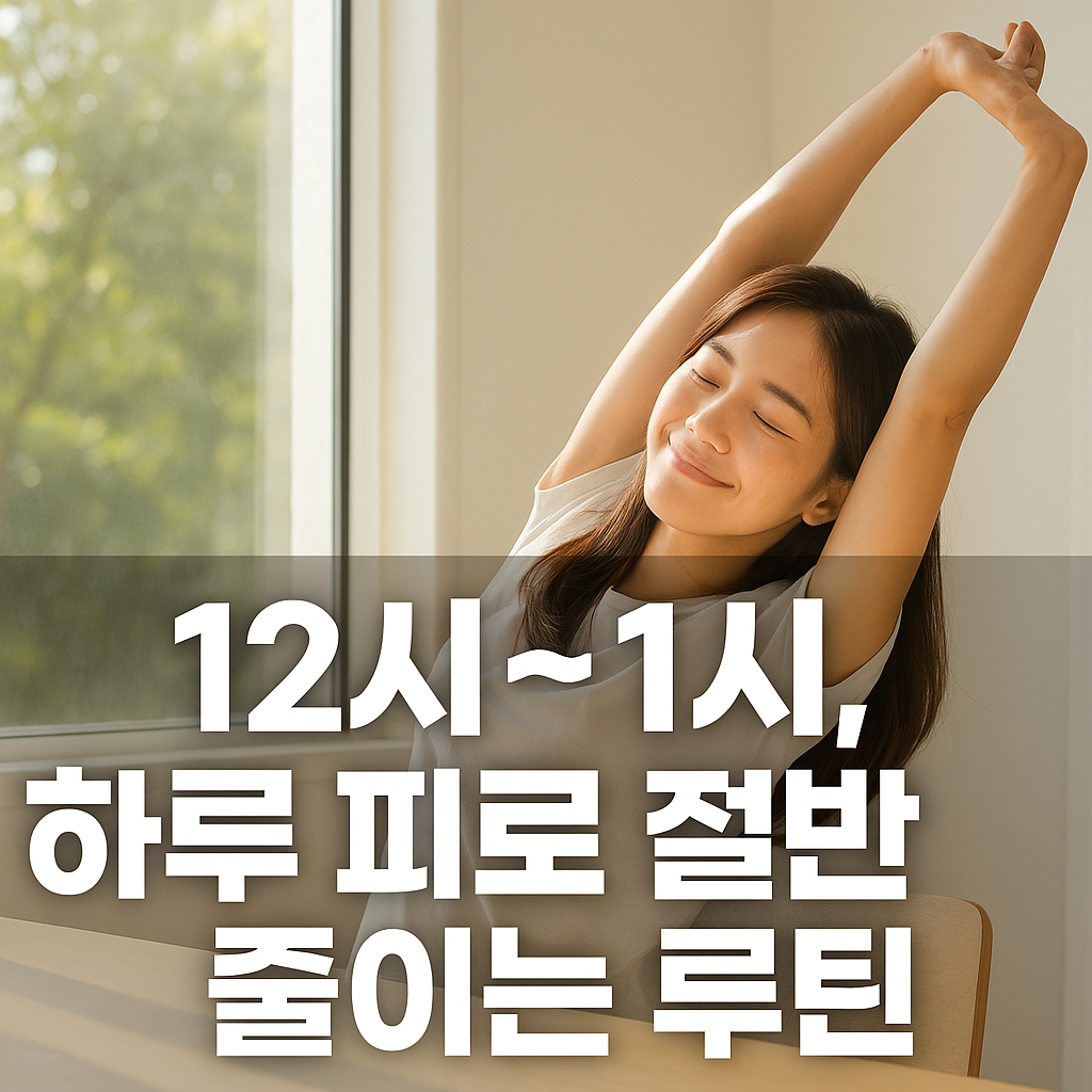 🕛 **왜 12시~1시인가요?** : 생체리듬상 피로와 졸음이 가장 심해지는 시간이에요. 이때의 전략적 휴식은 오후의 컨디션을 완전히 바꿔줘요.